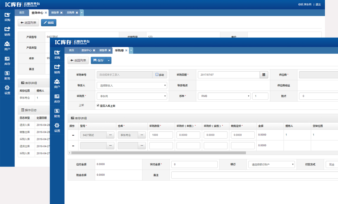 IC库存云服务平台是一款专门为IC行业高度定制的全方位ERP管理系统,拥有一套完整的进销存系统,能够为广大的客户提供国内各大工厂的呆料信息及各大商家的自有库存等信息。